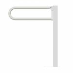 Uchwyt umywalkowy/WC łukowy uchylny wolnostojący 60 cm dla osób niepełnosprawnych wykonany jest ze stali nierdzewnej S304 polerowanej lub matowej, o średnicy 32 mm. Ma on za zadanie zapewnić stabilność osobie niepełnosprawnej korzystającej z umywalki lub WC. Uchwyt wolnostojący przytwierdzany do podłogi stosowany jest wtedy gdy nie sposób zamontować uchwytów naściennych (np. ściany są mało stabilne). Równocześnie w każdej chwili uchwyt może zostać złożony przez co praktycznie nie zajmuje miejsca w łazience. Do produkcji tego uchwytu stosuje się 1,5 mm rury ze stali nierdzewnej S304 o średnicy rury 32 mm. Płytka bazowa o grubości 3 mm z sześcioma otworami na śruby jest w całości przyspawana do uchwytu. Zestaw montażowy zawiera śruby i kołki ze stali nierdzewnej S304. Ten uchwyt dla osób niepełnosprawnych, jak i inne pozostałe charakteryzują się solidną konstrukcją i funkcjonalnością oraz spełniają europejskie normy i standardy w zakresie likwidacji barier dla osób niepełnosprawnych.
