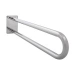 Uchwyt WC lewy montowany do podłogi dla osób niepełnosprawnych wykonany jest ze stali nierdzewnej S304 polerowanej lub matowej, o średnicy 25 mm. Ma on za zadanie zapewnić stabilność osobie niepełnosprawnej korzystającej z WC. Montowany jest po lewej stronie sanitariatu. Uchwyt przytwierdzany do podłogi stosowany jest wtedy gdy nie sposób zamontować uchwytów naściennych (np. ściany są mało stabilne). Do produkcji tego uchwytu stosuje się rury o grubości ścianki 1,5 mm ze stali nierdzewnej S304 o średnicy 25 mm. Rozeta o grubości 3 mm z trzema otworami na śruby jest w całości przyspawana do uchwytu. Zestaw montażowy zawiera śruby ze stali nierdzewnej oraz kołki. Ten uchwyt dla osób niepełnosprawnych, jak i inne pozostałe charakteryzują się solidną konstrukcją i funkcjonalnością oraz spełniają europejskie normy i standardy w zakresie likwidacji barier dla osób niepełnosprawnych.